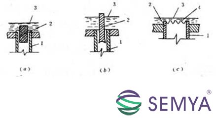 若蒸發(fā)濃度或粘度較大的溶液,可采用如圖5-6所示的降膜蒸發(fā)器,它的加熱室與升膜蒸發(fā)器類似。原料液由加熱室頂部加入,經(jīng)管端的液體分布器均勻地流人加熱管內(nèi),在溶液本身的重力作用下,溶液沿管內(nèi)壁呈膜狀下流,并進行蒸發(fā)。為了使溶液能在壁上均勻布膜,且防止二次蒸汽由加熱管頂端直接竄出,加熱管頂部必須設(shè)置加工良好的液體分布器。圖5-7示出三種最常用的液體分布器。圖(a)的分布器為有螺旋形溝槽的圓柱體;圖(b)的分布器下端為圓錐體,且底面為凹面,以防止沿錐體斜面下流的液體向中央聚集;圖(c)的分離器是將管端周邊加工成齒縫形。