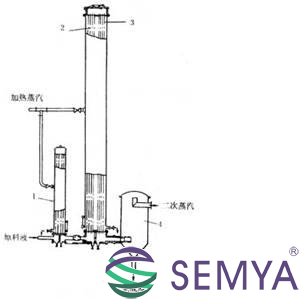 上述各種蒸發(fā)器的主要缺點是加熱室內(nèi)滯料量大,致使物料在高溫下停留時間長,特別不適于處理熱敏性物料。在膜式蒸發(fā)器內(nèi),溶液只通過加熱室一次即可濃縮到需要的濃度,停留時間僅為數(shù)秒或十余秒鐘。操作過程中溶液沿加熱管壁呈傳熱效果最佳的膜狀流動。