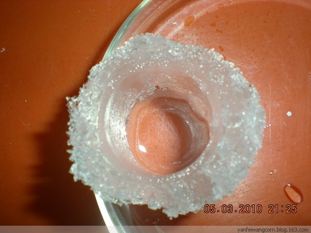 下圖就是cold finger形式的熔融結(jié)晶器,及發(fā)汗完的晶體圖片。