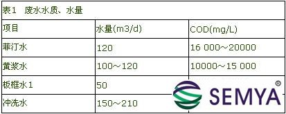 生產(chǎn)廢水主要來(lái)源于浸泡、胚芽分離、纖維洗滌和脫水等工序,其主要成分為淀粉、糖類(lèi)、蛋白質(zhì)、纖維素等有機(jī)物質(zhì)和氮、磷等無(wú)機(jī)物,各種廢水水質(zhì)、水量見(jiàn)表1。